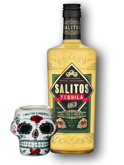 Tequila Salitos Gold 70 CL 38% + Pahar Salitos Craniu