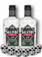 Acest pachet conține 2 sticle de Salitos Tequila Silver 0,7L și 6 shot-uri albe Skull Salitos cadou!